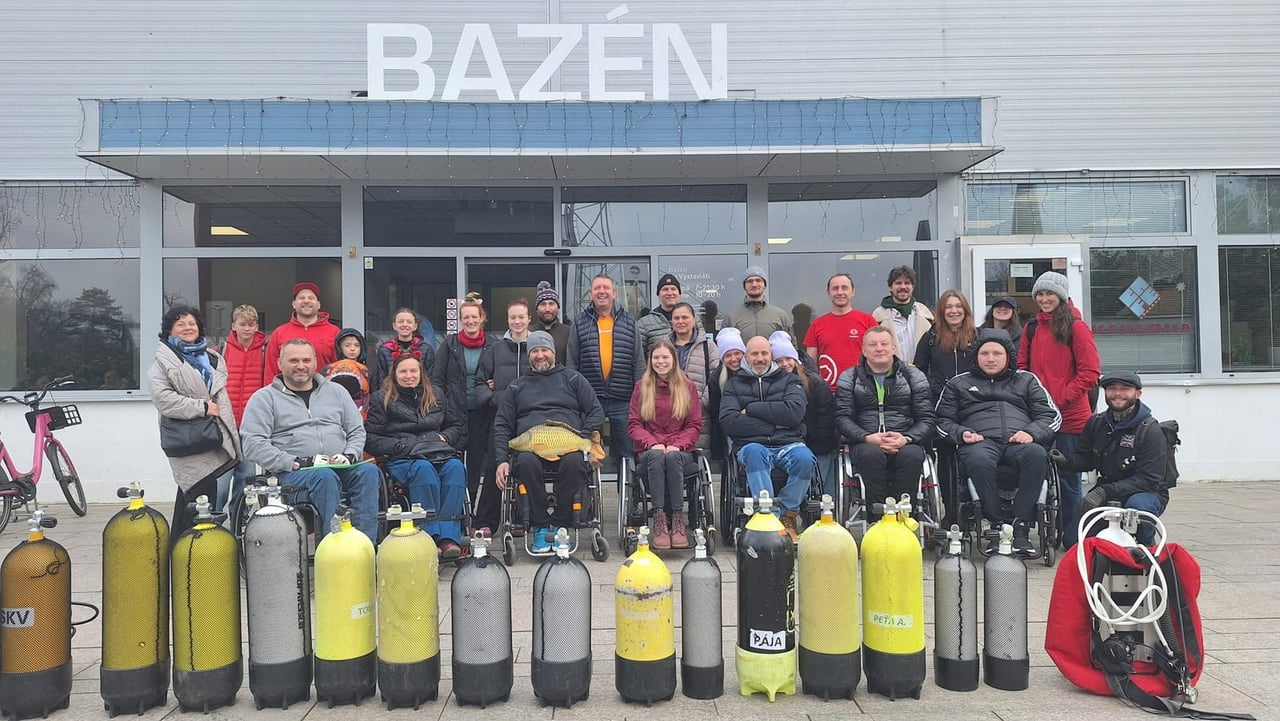 V neděli 21. prosince 2025 se v pražském bazénu v Holešovicích uskutečnila tradiční potápěčská akce Vánoční bazén Holešovice 2025, kterou uspořádal Sportovní klub vozíčkářů Praha jako symbolické zakončení potápěčské sezony. Vánoční atmosféru pod hladinou dotvářel ozdobený vánoční stromek s dárky a nechyběl ani slavnostní přípitek nealkoholickým šampusem přímo pod vodou. Akce se zúčastnilo 11 tělesně hendikepovaných potápěčů, z nichž jeden absolvoval svůj úplně první ponor s potápěčskou výstrojí, a všichni si společný čas ve vodě užili s nadšením a úsměvem. Bezpečný průběh zajistili zkušení instruktoři, kterým patří velké poděkování, stejně jako partnerům akce, kteří dlouhodobě podporují sportovní aktivity osob se zdravotním postižením. Po skončení potápění pokračovalo setkání v přátelském duchu i mimo bazén, kde si účastníci sdíleli zážitky a symbolicky se rozloučili s úspěšným rokem. Vánoční bazén tak znovu ukázal, že potápění není jen sport, ale také radost, překonávání vlastních hranic a silný pocit sounáležitosti.